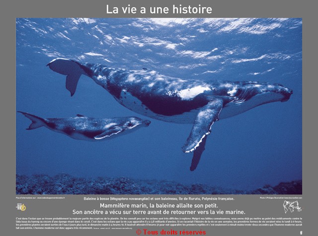 Affiche « La vie a une histoire - Baleine à bosses (Megaptera novà anglià) et son baleineau, île de Rurutu, Polynésie française », 2007