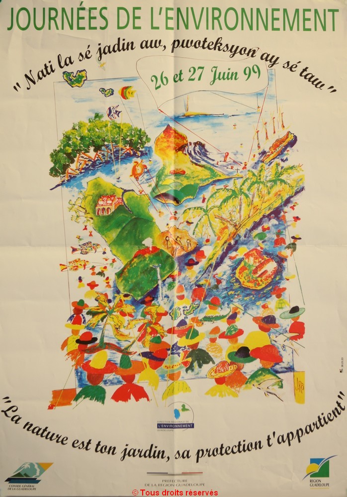 La nature est ton jardin, sa protection t’appartient, journées de l’environnement 26 et 27 juin 99, DIREN Guadeloupe, 50x80 cm, couleur, 1999