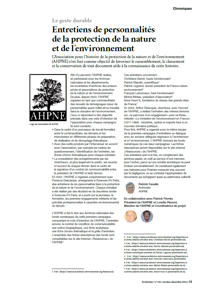 Méthode employée par l’Association pour l’histoire de la protection de la et de l’environnement