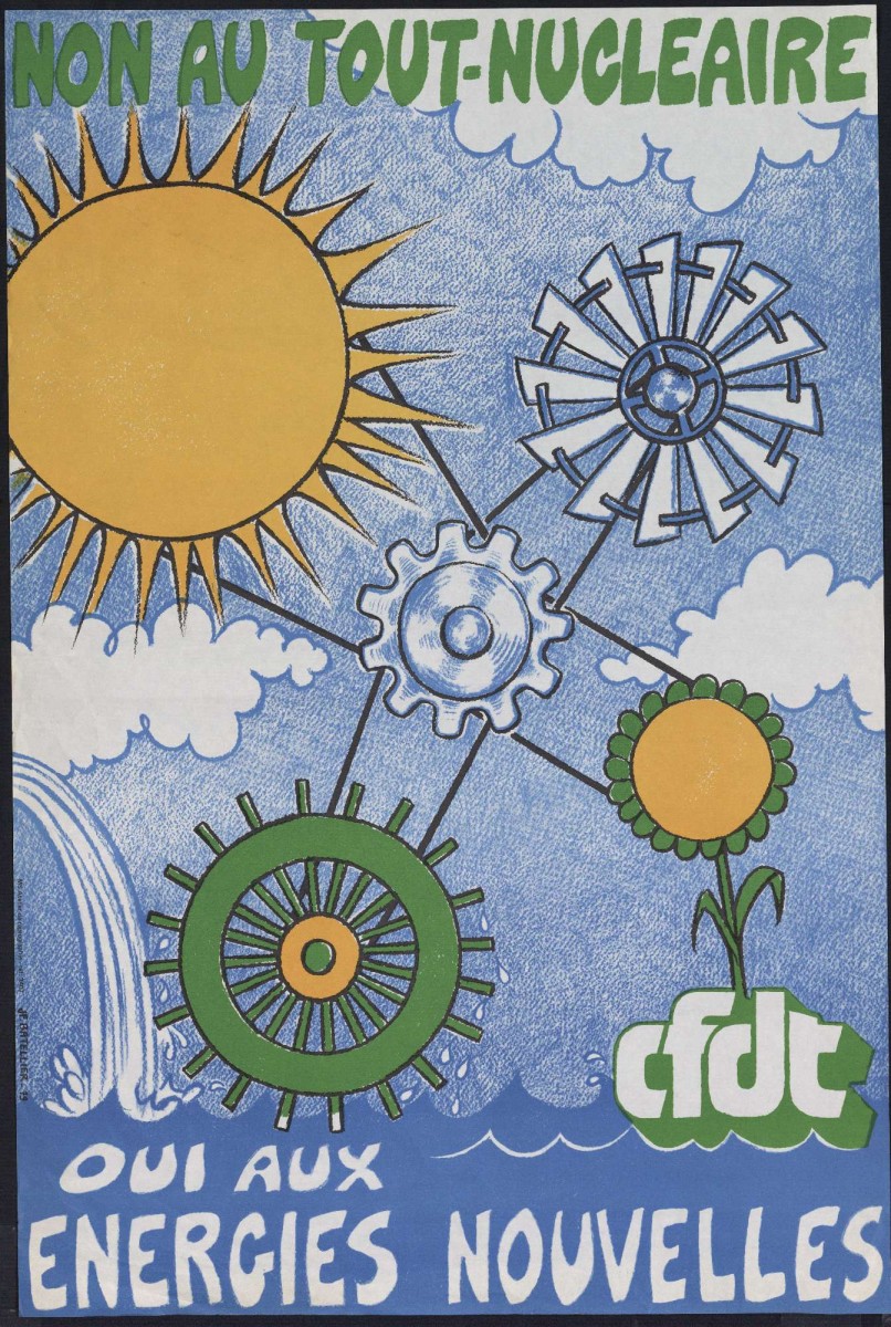 Pendant les années 1970-1980, après les deux chocs pétroliers de 1973 et de 1979, la CFDT s’est fortement impliquée dans la promotion d’une nouvelle politique énergétique en France, autour de deux mots d’ordre : les économies dans la consommation d’énergies fossiles et la promotion d’énergies nouvelles qui soient renouvelables. C’est aussi un moment où le mouvement écologiste, dans sa diversité, conteste le plan Messmer de constitution d’un parc de centrales nucléaires sur le territoire français, avec notamment deux exemples représentatifs : Plogoff et Creys-Malville. Les nouvelles énergies apparaissent alors comme le moyen d’échapper au nucléaire tout en préservant les ressources fossiles.