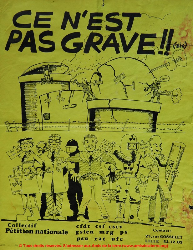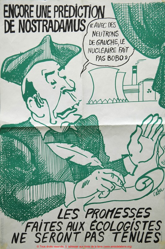 Cette affiche est la manifestation de la lutte contre l’implantation d’une nouvelle nucléaire sur la côte bretonne. Elle est lancée par le CRIN (Comité Régional d’Information Nucléaire), créé dans les années 1970 quand plusieurs sites de la côte ouest sont pressentis pour y implanter des centrales. Son objectif est de sensibiliser la population à l’usage de l’énergie nucléaire et ses conséquences. Elle n’a pas d’appartenance politique. Après l’abandon des projets, le CRIN a persisté pour lutter contre un problème devenu mondial.