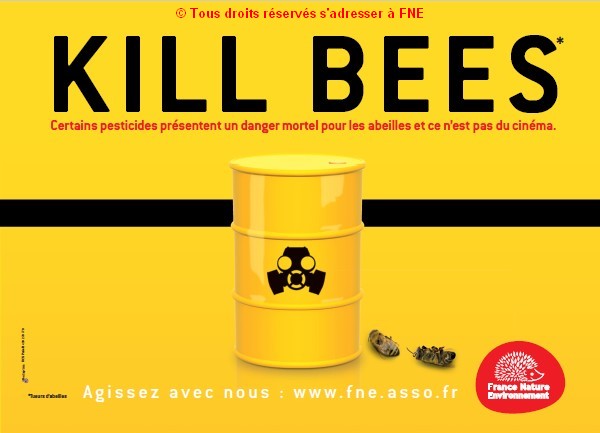 Cette affiche, quoique récente, représente un problème déjà bien connu depuis plusieurs décennies, à savoir celui de l’usage problématique des pesticides et des menaces pesant sur la biodiversité. Dans cet exemple, ce sont les abeilles qui se trouvent menacées. L’alerte est déjà lancée en 1962 par Rachel Carson dans Printemps silencieux, ouvrage de référence dans lequel l’autrice explique en quoi les pesticides se révèlent être de véritables biocides.