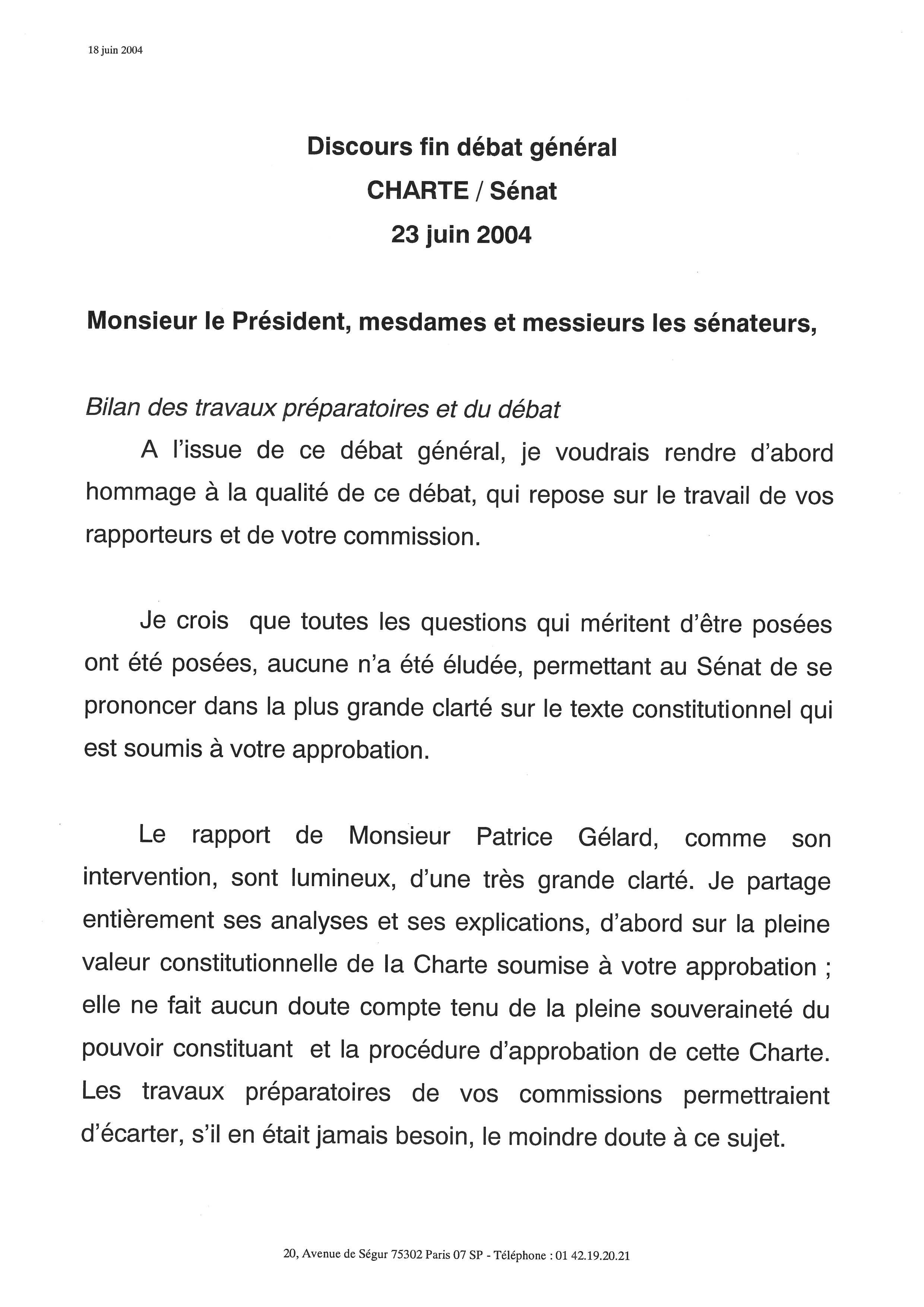 Présentation au Sénat du projet de loi constitutionnelle concernant la Charte de l’environnement, 2004