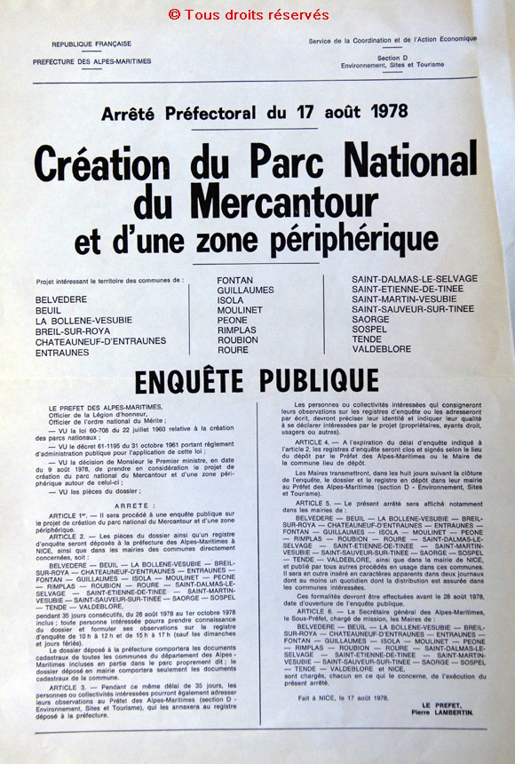 Arrêté préfectoral de la création du parc du Mercantour, 1978