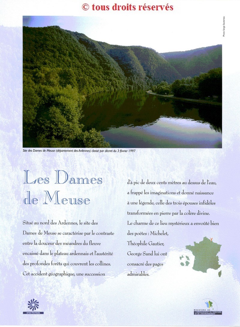 20060546/12 « Les Dames/de Meuse/[...] », Parimage (Ed.), [1999], photo de Serge Sautereau, [vue des Dames de Meuse dans les Ardennes, plus logo], 1 ex., 40 x 30 cm, couleur. |