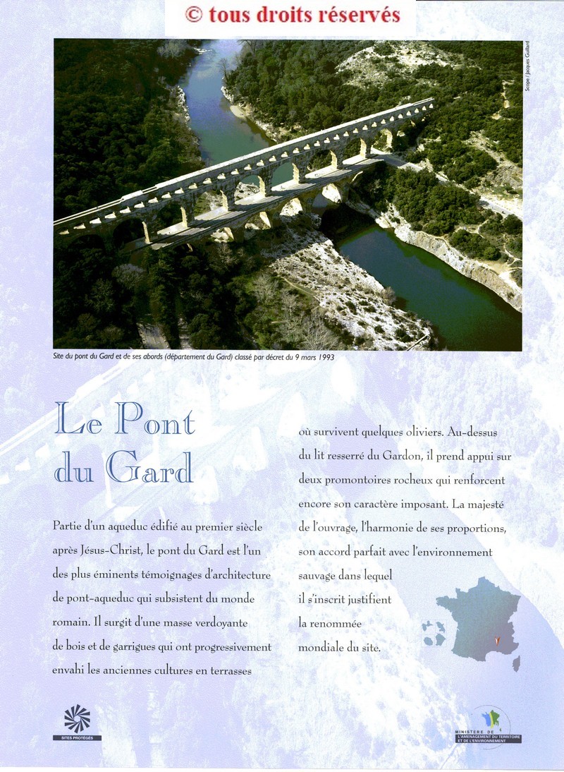 20060546/24 « Le Pont/du Gard/[...] », campagne d’information, Parimage (Ed.), [1999], photo de Jacques Guillard, [vue du pont du Gard et de ses abords, plus logo], 1 ex., 40 x 30 cm, couleur. |