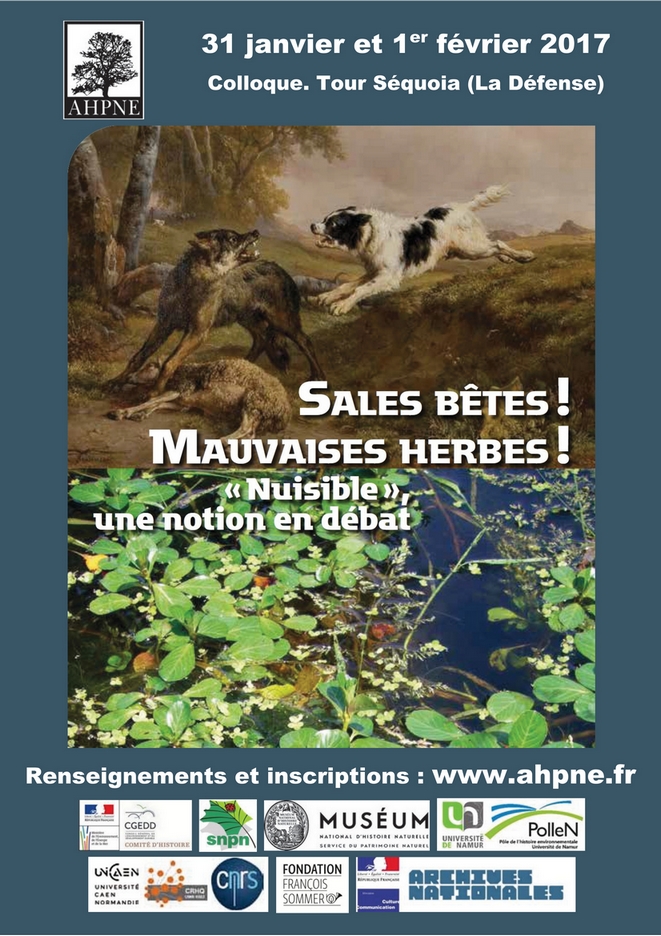 Comme annoncé lors du lancement de l’appel à communications, l’AHPNE tiendra son 3ème colloque les 31 janvier et 1er février 2017 sur le thème de l’histoire de la notion d’animaux et végétaux nuisibles.